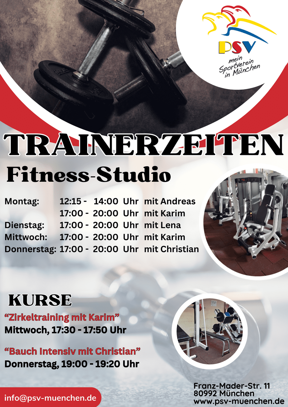 Gerne können Sie in unserer Geschäftsstelle ein unverbindliches Probetraining bei einem unserer Übungsleiter vereinbaren.