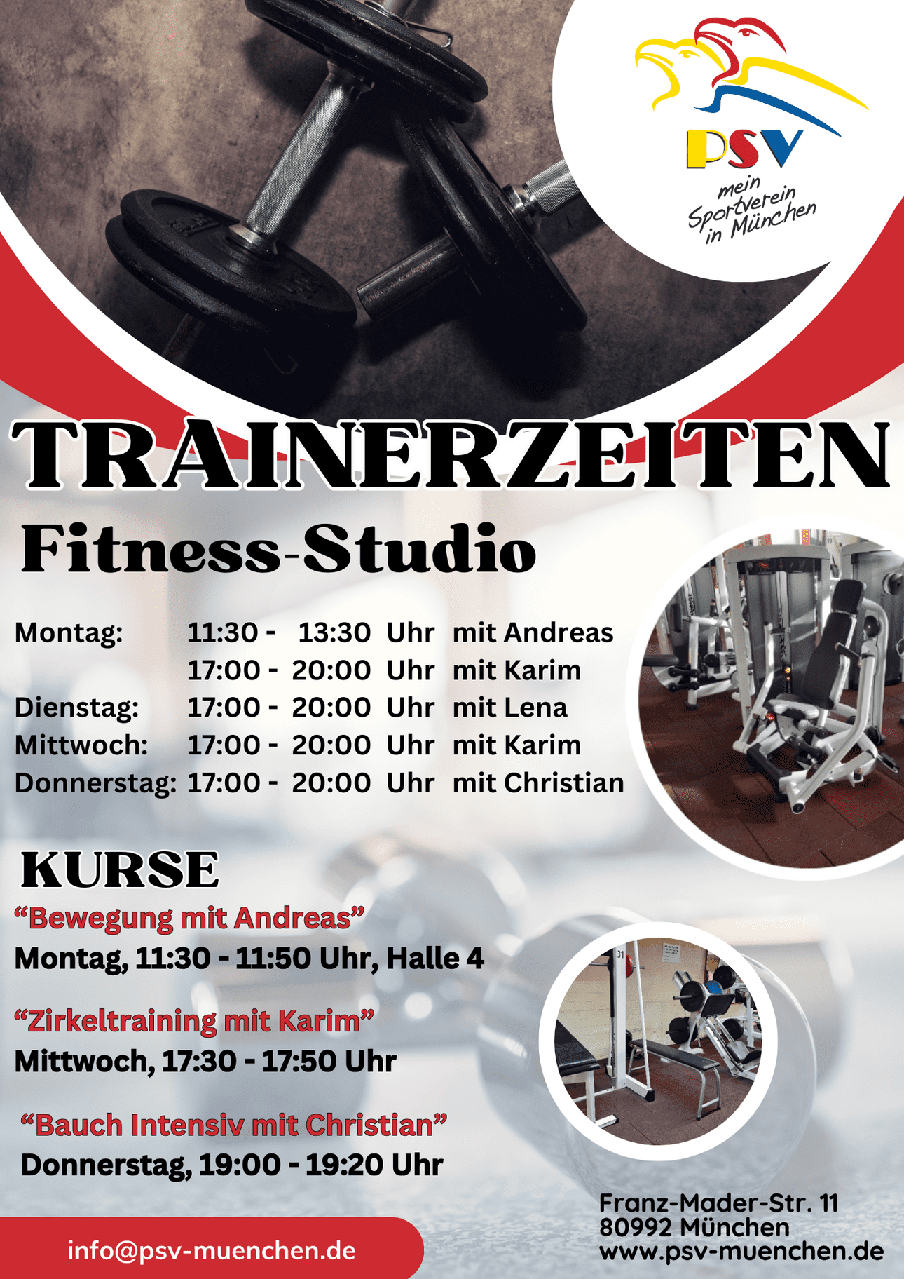 - Für ein Probetraining, telefonische Anmeldung in der Geschäftsstelle