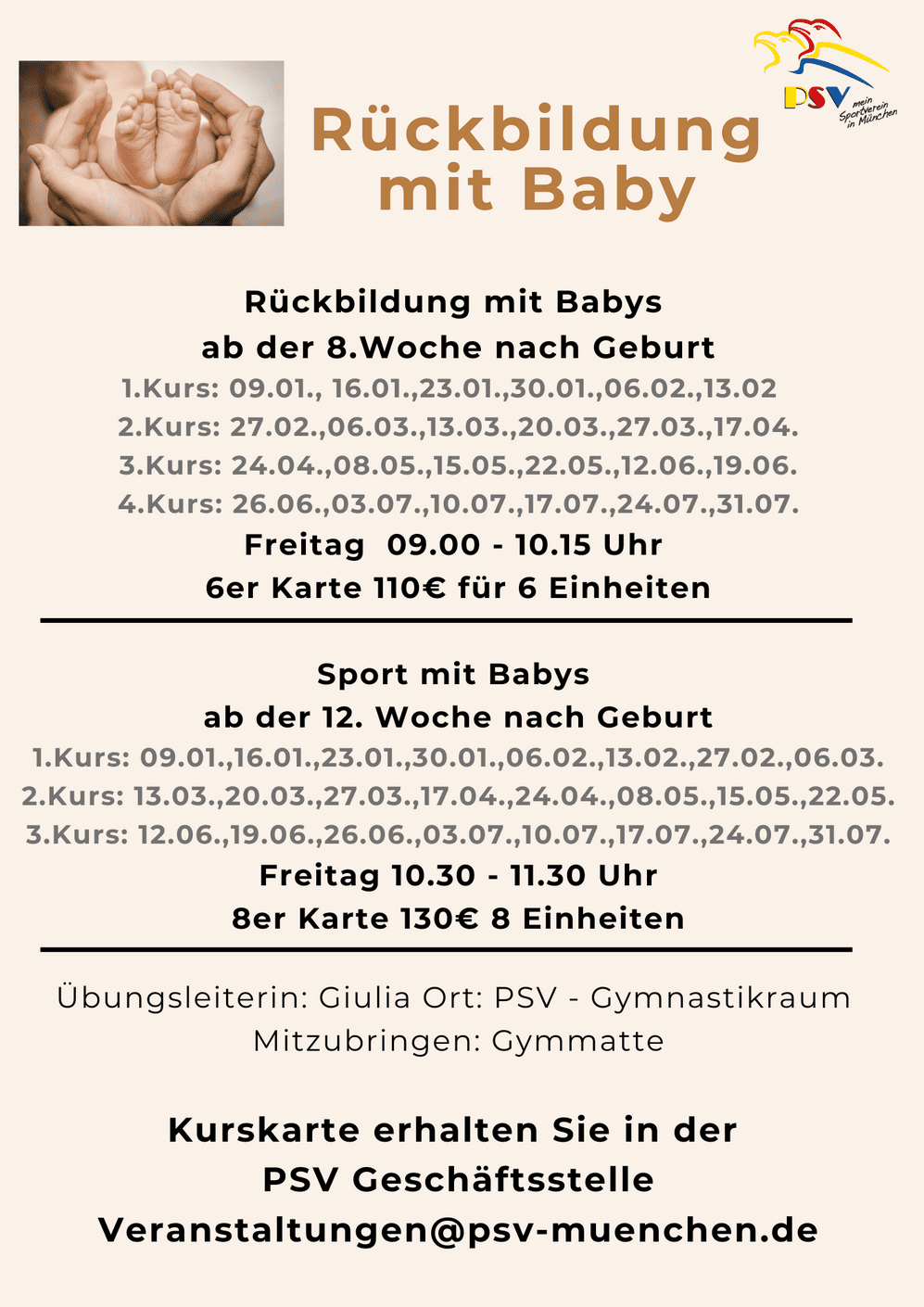 Hier finden Sie unser gesamtes Sportangebot für groß und klein sowie Trainigszeiten.