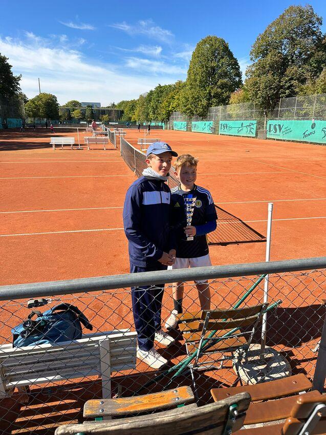 Sofort danach startete bei U14 Jakobs Bruder Jonas gegen Philipp Kaps. Jakob gewann souverän 6:0, 6:2 und so holten sich die Thelen-Brothers den Doppelsieg!