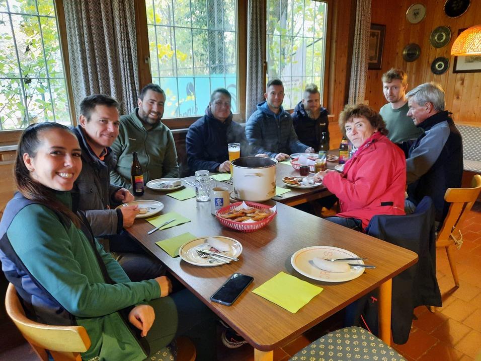 Dieses großartige Engagement der insgesamt 22 Helfer musste einfach belohnt werden und deshalb spendierte die Abteilungsleitung ein Weißwurstessen in unserem nun sauberen Biergarten.