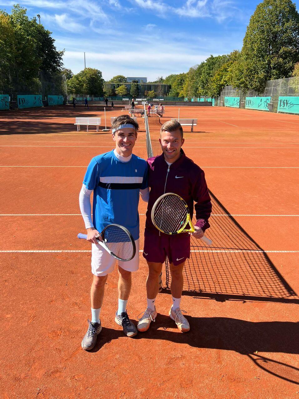 Um 13:00 Uhr betraten die Favoriten im Herren Einzel unseren Court Nr. 1: Miles Schoenrock, unser Neuzugang 2023 und jüngster Stammspieler der Herrenmannschaft (dieses Jahr an Position 1 angetreten) und Joshua Haubner, ehemaliger Spieler der HE00 (meistens an Position 1 spielend).