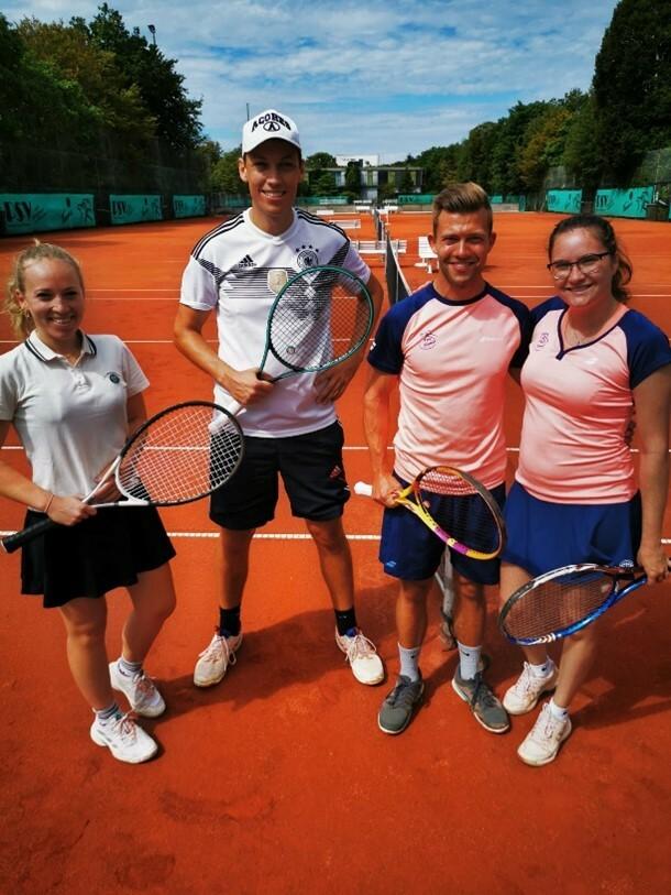 Nach der Punktspielzeit startete dann dieses Jahr wieder die Mixedrunde, bei der wir für Mixed 00 mit einer bunten Spielermischung aus je 10 Damen und 10 Herren gemeldet waren. Für mich als Newcomer bei den „Jungen“ war das eine sehr interessante Erfahrung. Als Gegner kann man sowohl im Einzel als auch im Mixed (statt Doppel) auf alle Altersgruppen treffen und die Atmosphäre ist viel relaxter als bei den Medenspielen. Obwohl man natürlich auch seine LK verbessern kann, steht der Spaß im Vordergrund und das ist auch mal schön! Nach allen 4 Begegnungen mit lauter netten Mannschaften haben wir uns riesig über den erneuten Gruppensieg gefreut!